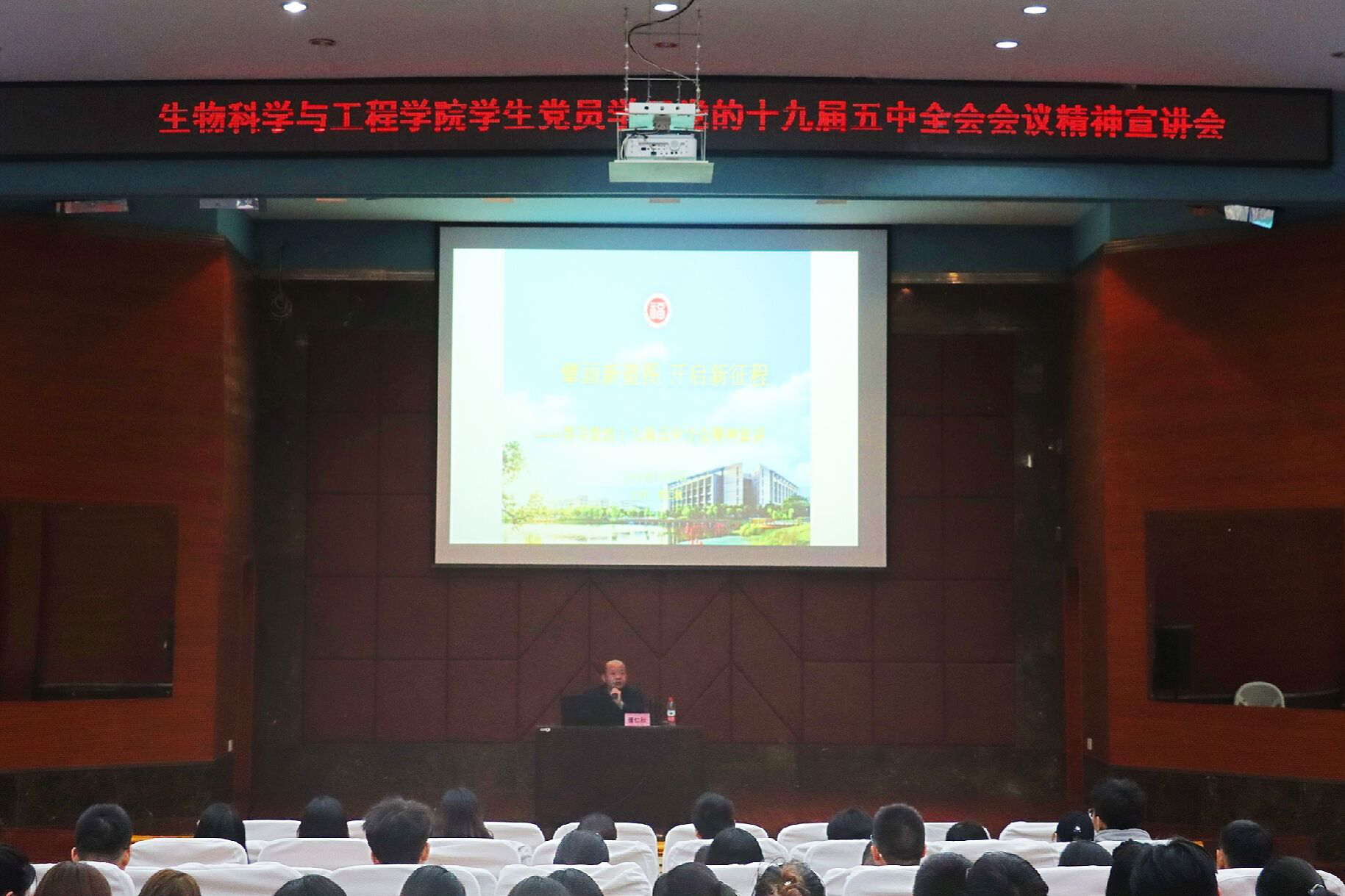 11月9日下午,生工学院学生党员党的十九届五中全会精神学习宣讲会在嘉锡厅举行。院党委曹仁秋副书记作了《擘画新蓝图,开启新征程》的学习宣讲。