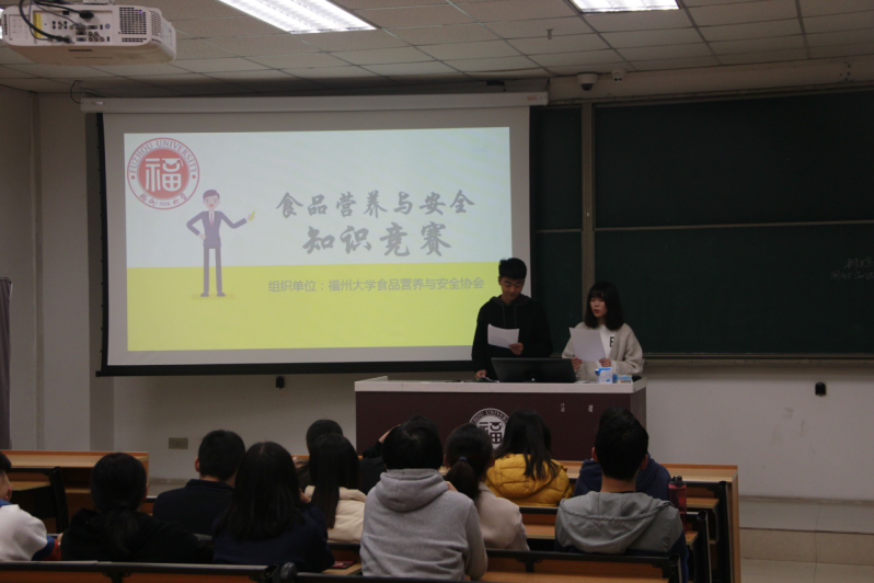 2018年12月8日晚七点整,pg电子官网食安协会所举办的食品营养与安全知识竞赛决赛于西二—201教室正式开始。预赛所角逐出的八支队伍提前二十分钟尽数到场,完成签到后迅速坐到本队所在位置,等待着比赛的正式开始。