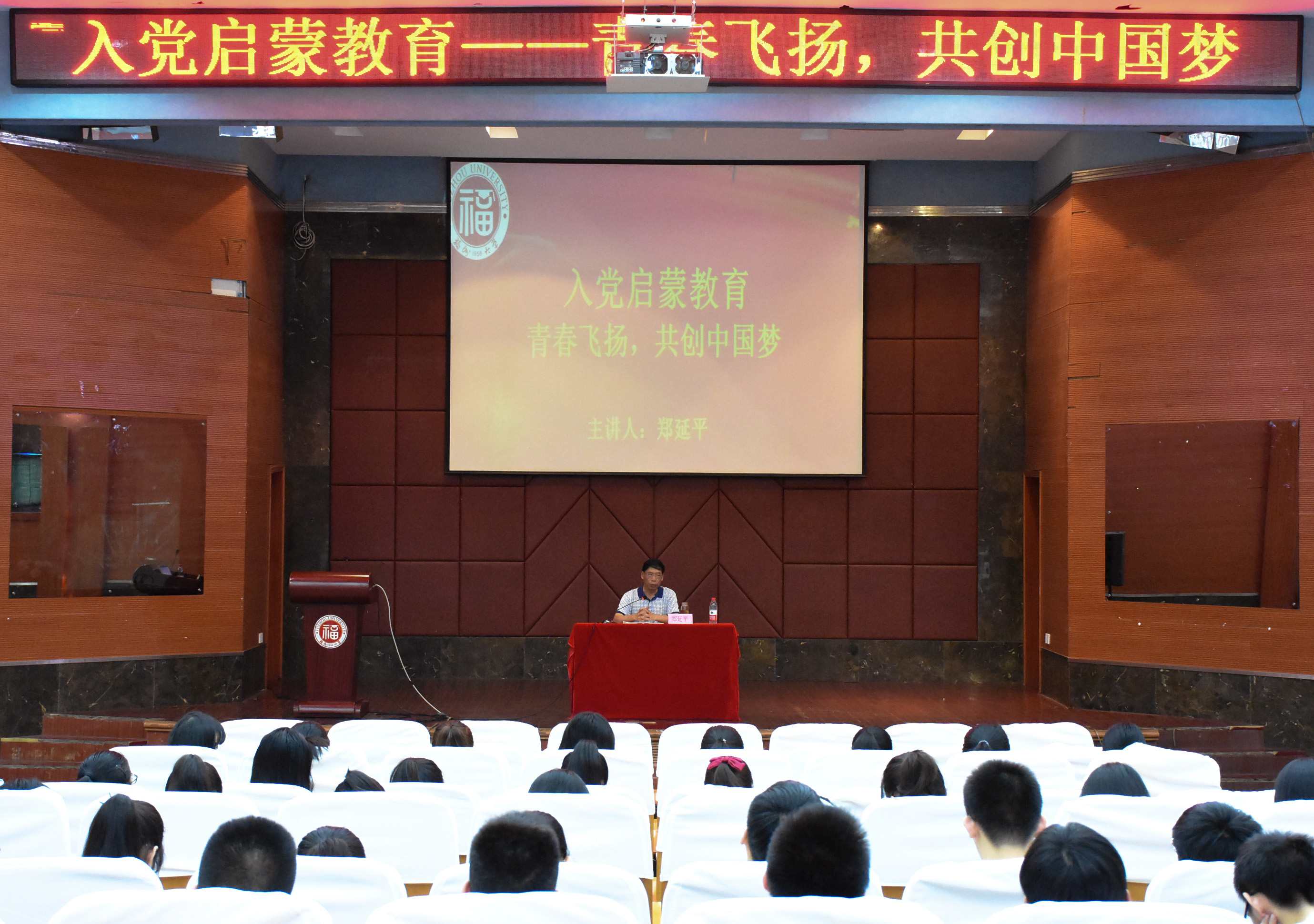 讲座中,郑延平副书记从正确认识自己、认识中国共产党、认识我们所处的时代、学会组织管理、珍惜他人和提升道德素质全面发展六个方面对新同学们进行了深入详细的入党启蒙教育。从介绍中国共产党的性质,教导同学们培养“在党爱党”的思想,到教育新同学们在大学的新征程里保持高中刻苦的学习态度,郑延平副书记用幽默风趣的语言与事例,给予了新生们入党初步而具体的认识。除此之外,郑延平副书记还强调了辨别真假善恶的重要性,希望同学们能“常怀感恩之心,常思回报之情”。