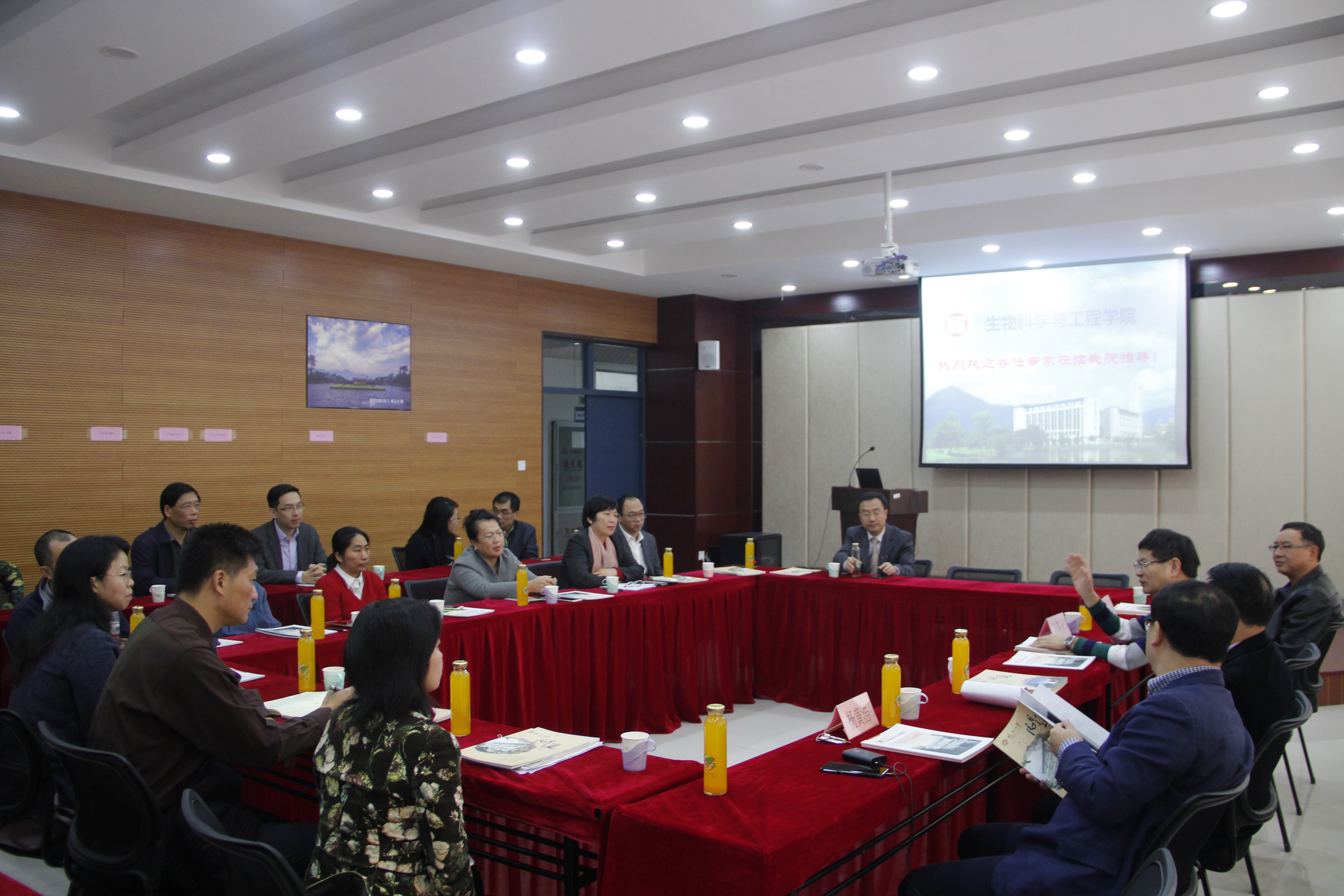 副院长(主持工作)汪少芸教授代表学院对陈芬儿院士与校领导的到来表示热烈的欢迎,并向大家介绍了学院的发展概况与办学特色,并说明了学院各个团队的研究方向以及在各领域所取得的成绩。听完汪教授的介绍后,陈芬儿院士对生工学院的发展给予了充分的肯定,也对其中存在的问题提出了宝贵的意见,并表示对今年新开办的生物医学工程专业充满了期待。除此之外,他还与在场的老师展开了学术交流,他认为药物的合成途径方向正在发生改变,即从原有的化学方向向生物方向转变,这个转变正不断加深两个专业之间的联系。