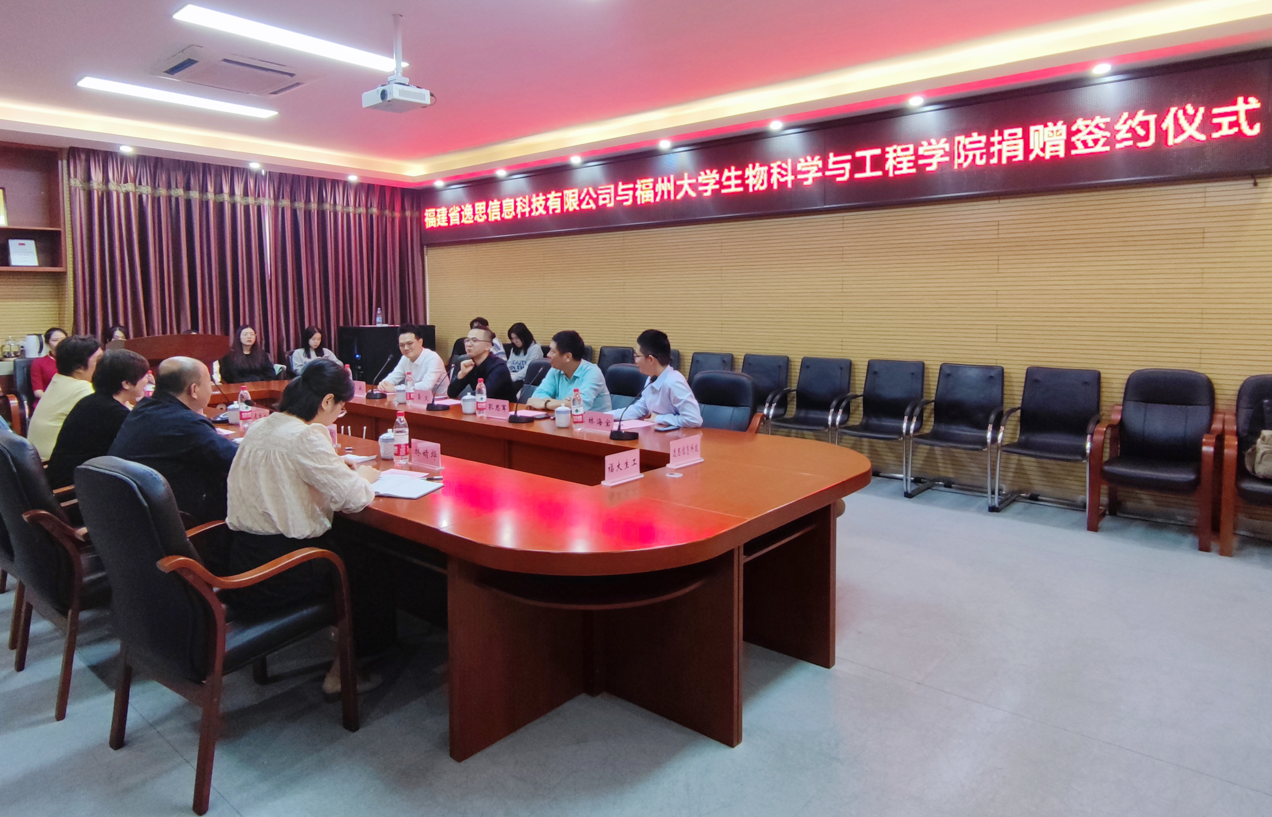 10月20日下午,生工学院于嘉锡楼225会议室举行“逸思奖学金”捐赠签约仪式。捐赠仪式由生工学院党委副书记曹仁秋主持,福建省逸思信息科技有限公司总经理龚文先生、副总经理林海宝先生、人事总监姜斌先生、福建省优拓贸易有限公司总经理孔思军先生,生工学院党委书记王秀萍、团委书记张晶及学生代表参加本次捐赠仪式。